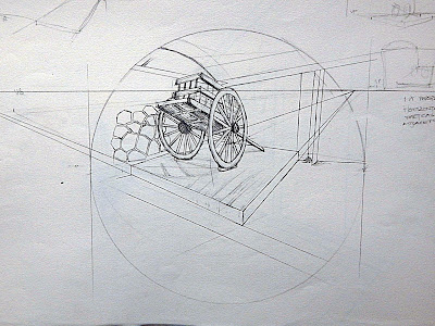 In addition to the one point and two point perspective drawings, I had to do a fish eye perspective and a transcription work whereby choosing an artist and using the same painting technique. The artist I chose for my transcription work was Raoul Dufy.